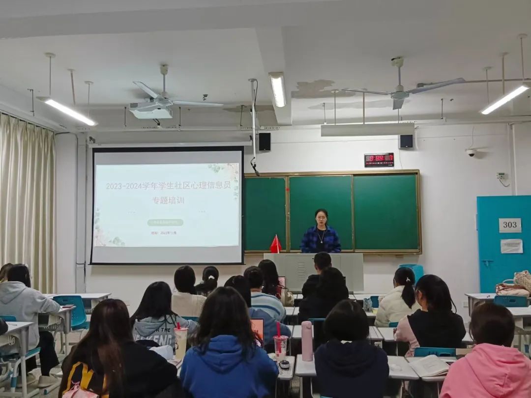 11月22日晚,我院在圆山新教学楼303开展2023-2024学年新生社区心理信息员专题培训。培训由心理助管郑长英主持,心理辅导站站长沈书伊老师主讲。(通讯员 郑长英)
