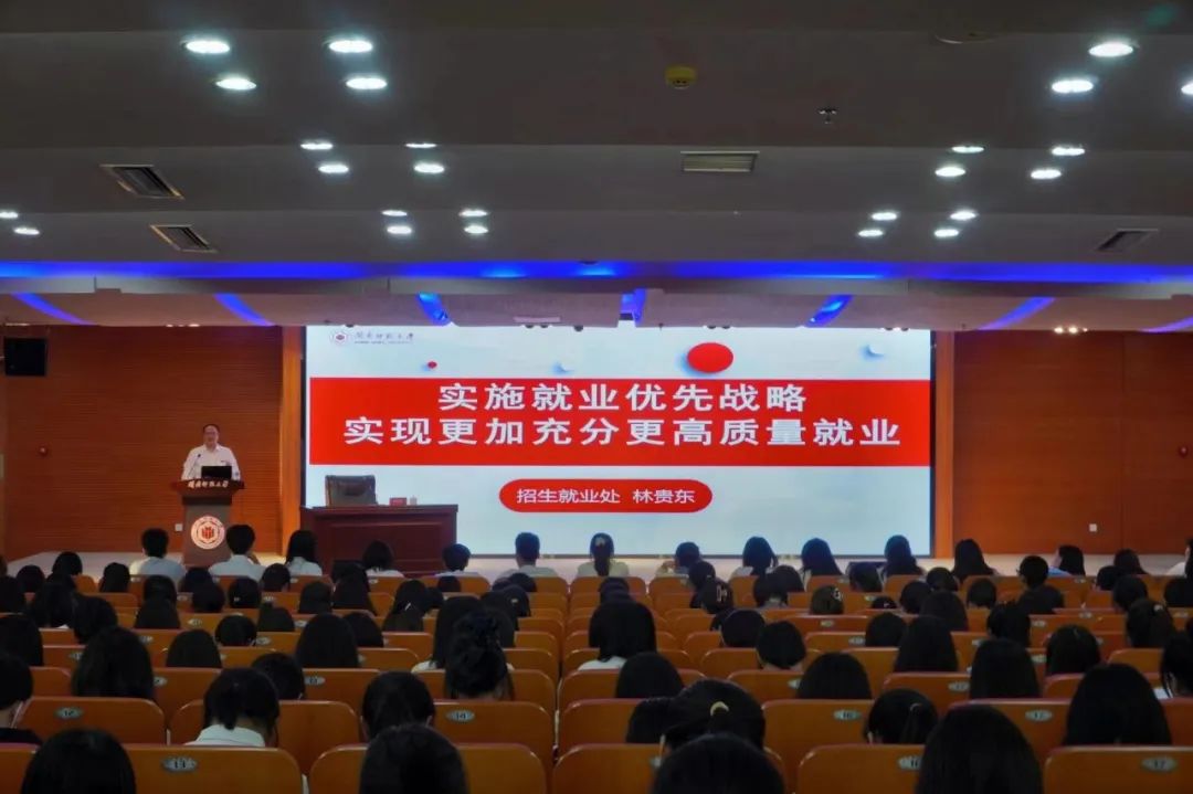 11月23日下午,校招生就业处处长林贵东应邀以《实施就业优先战略 实现更加充分更高质量就业》为题,为我院学子讲授大学生成长领航计划“第一讲”,本次活动由我院党委副书记邓战军主持。(通讯员 陈婧)