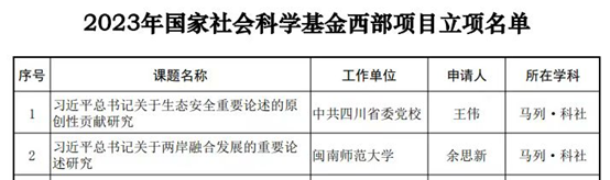 9月19日,2023年国家社科基金西部项目立项名单予以公示。我院《习近平总书记关于两岸融合发展的重要论述研究》课题纳入立项名单。(通讯员:曾雨茹)