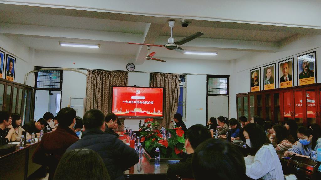 12月24日下午,我院在综中404召开党委理论学习中心组扩大会暨党的十九届五中全会精神宣讲会,会议由我校学习贯彻党的十九届五中全会精神宣讲团成员、yl88858永利集团副院长宋帮强副教授主讲,全体教职工及部分学生代表参加会议。