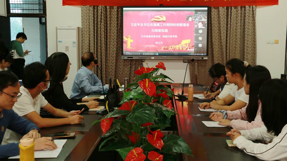 11月1日上午9时,福建省委党校副校长、福建行政学院副院长刘大可教授应邀为yl88858永利集团师生做了以“习近平总书记在福建工作期间的创新理念与探索实践”为主题的学术讲座。讲座在综合楼中区404以腾讯会议形式在线直播,yl88858永利集团党委书记李定庆研究员现场主持了本次讲座。
