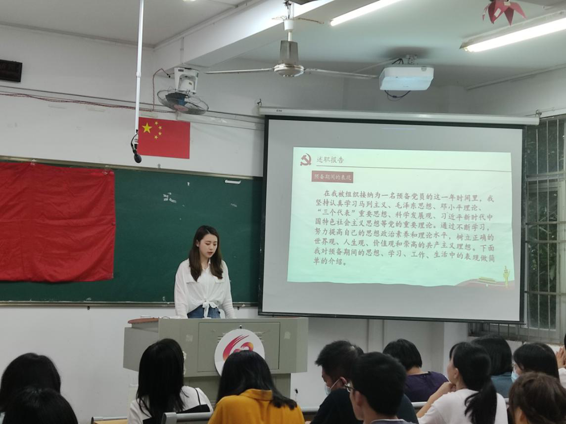 2020年10月8日下午我院在综南201召开研究生预备党员的转正述职大会,党委副书记陈佳薇老师、党委组织员黄艳红老师、研究生第一党支部书记张妍老师、全体研究生党员、发展对象、入党积极分子参加了此次会议。