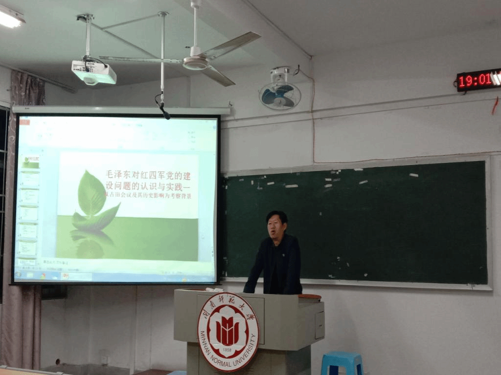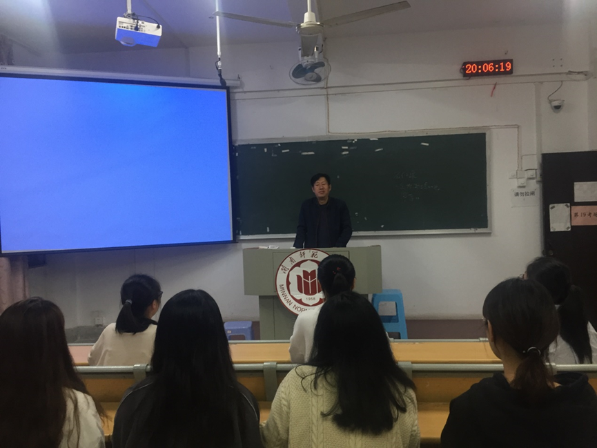 11月12日晚上,我校马克思主义理论读书社在综合楼南区202教室组织专题理论学习。yl88858永利集团教授、习近平新时代中国特色社会主义思想读书社指导老师组组长李德栓博士应邀作了题为“毛泽东对红四军党的建设问题的认识与实践--以古田会议及其历史影响为考察背景”的专题报告。