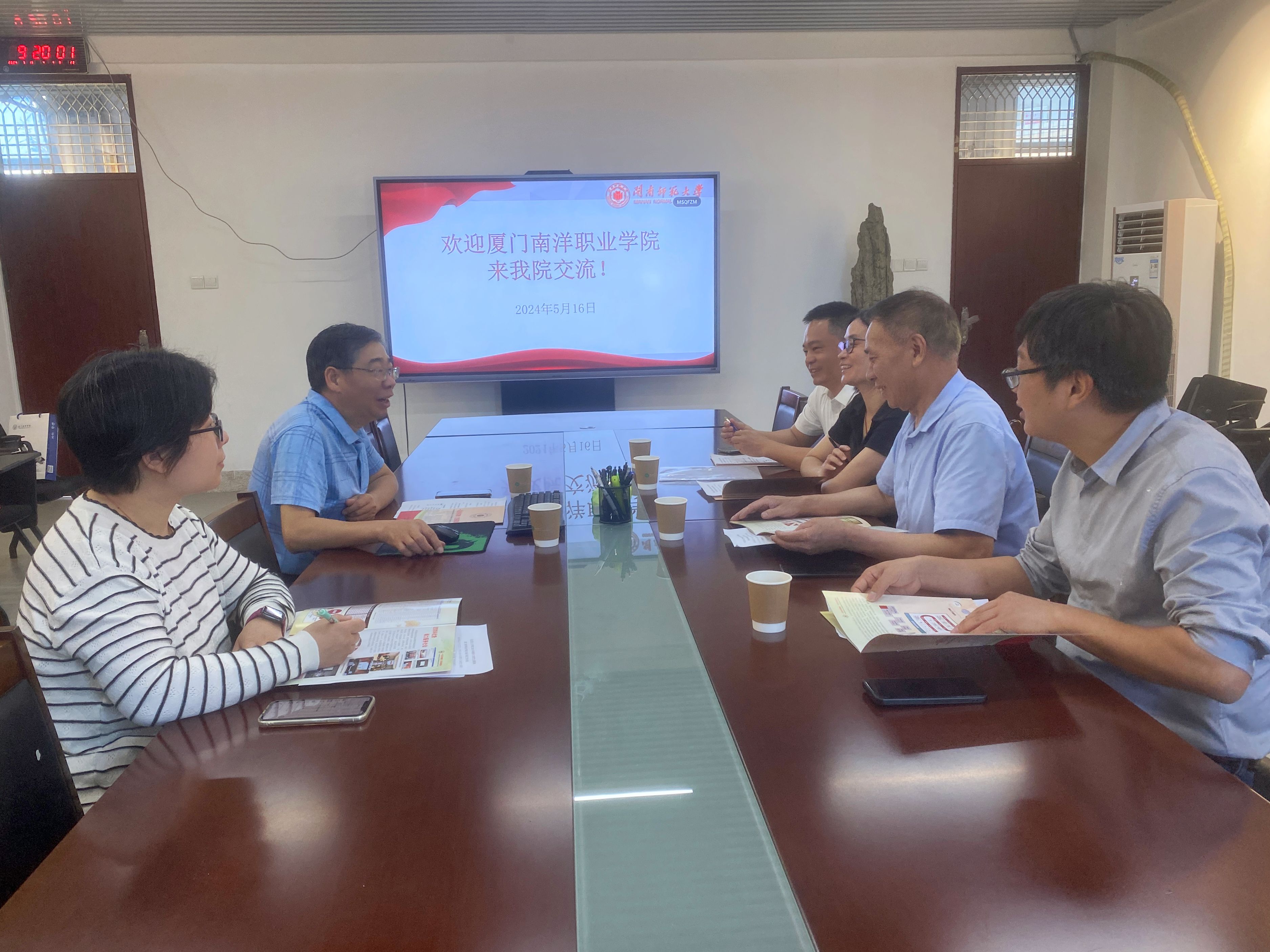 5月16日上午,厦门南洋职业学院领导一行来我院交流。我院院长陈再生、研究生秘书张妍在综合楼中区404与来宾进行交流。