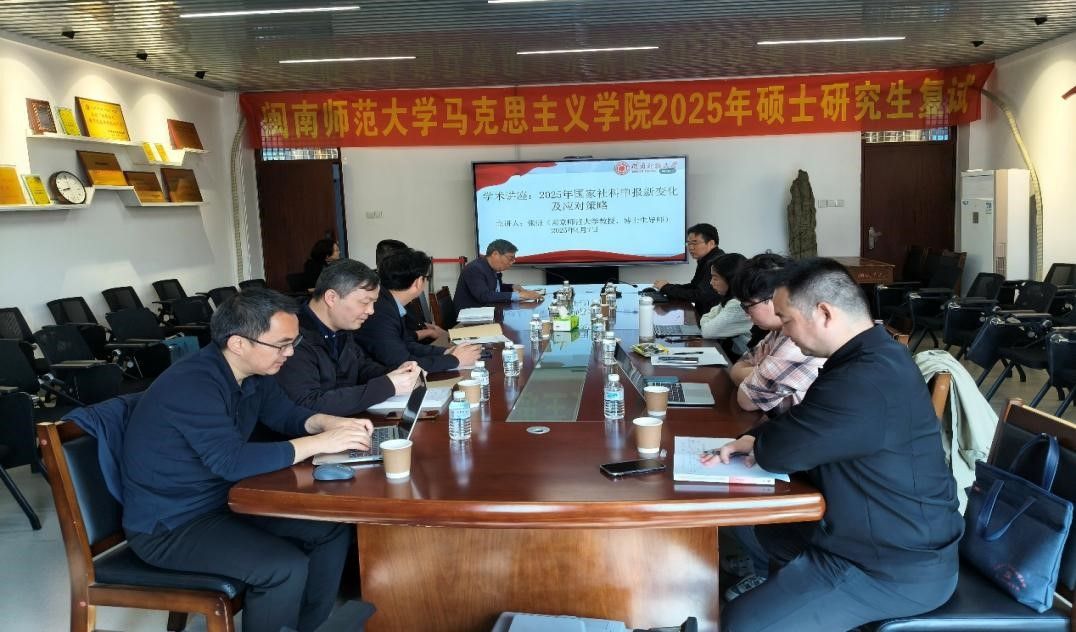 4月7日上午,南京师范大学博士生导师张振教授应邀来我院作题为“2025年国家社科申报新变化及应对策略”的专题讲座。本次讲座由我院院长陈再生主持,副院长林海燕和部分教师代表参加讲座。