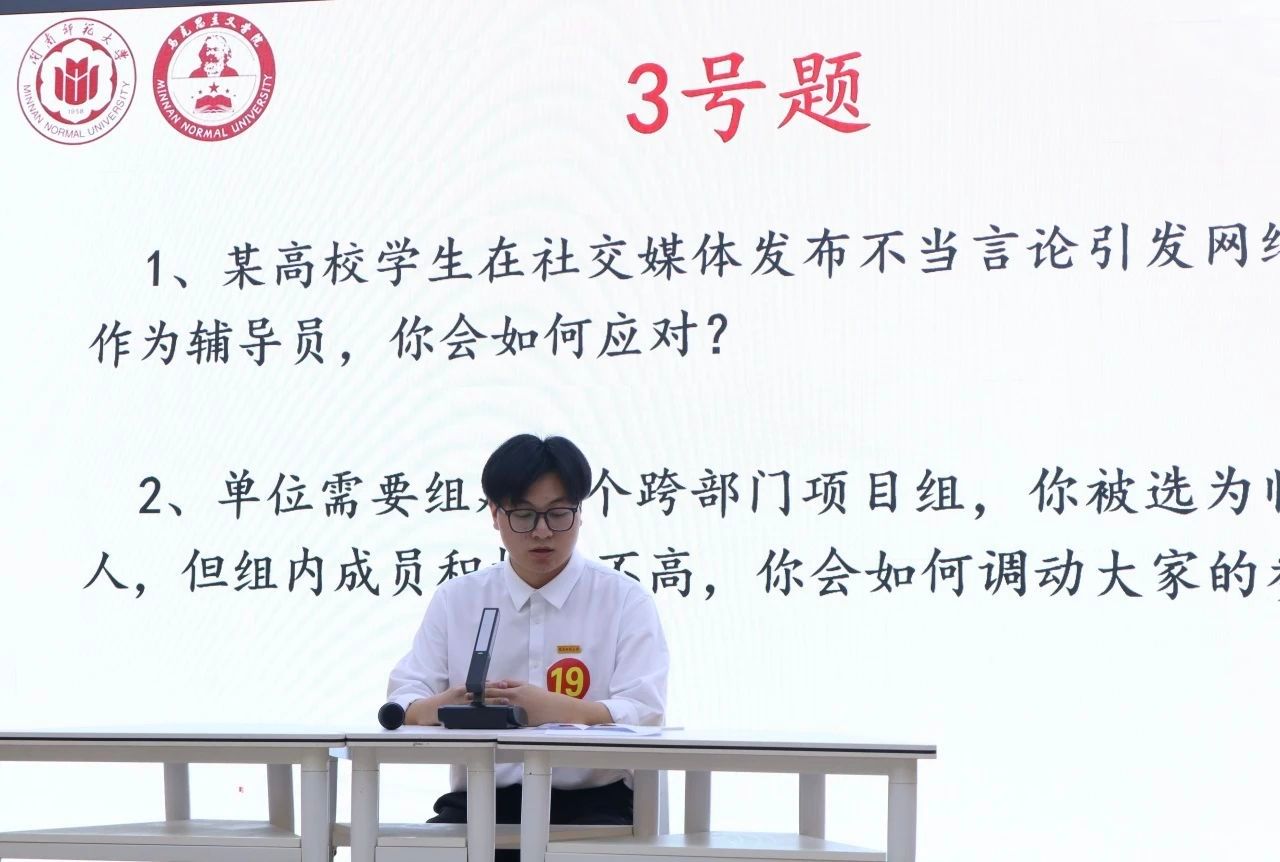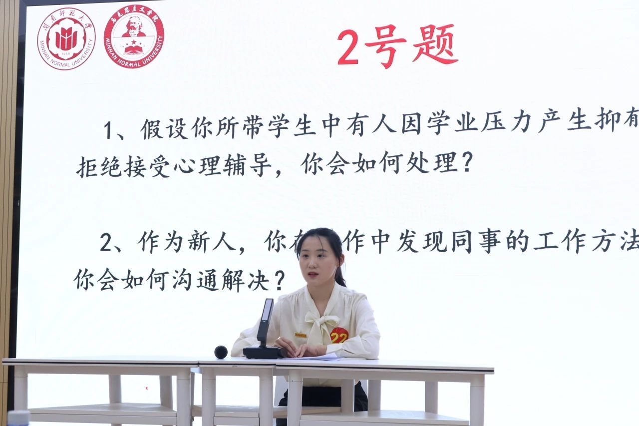决赛环节采用结构化面试的方式,全面考验选手们的综合素养。比赛中,选手们用生动的语言、真挚的情感,传递着思政教育的力量,赢得了现场观众的阵阵掌声。经过激烈角逐,最终评选出一等奖1名、二等奖3名、三等奖6名、优秀奖5名。