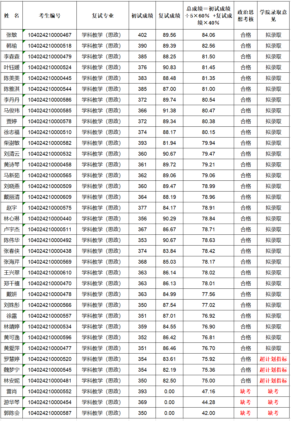 yl88858永利集团2024年一志愿复试结果及拟录取情况公示(学科教学(思政)专业)