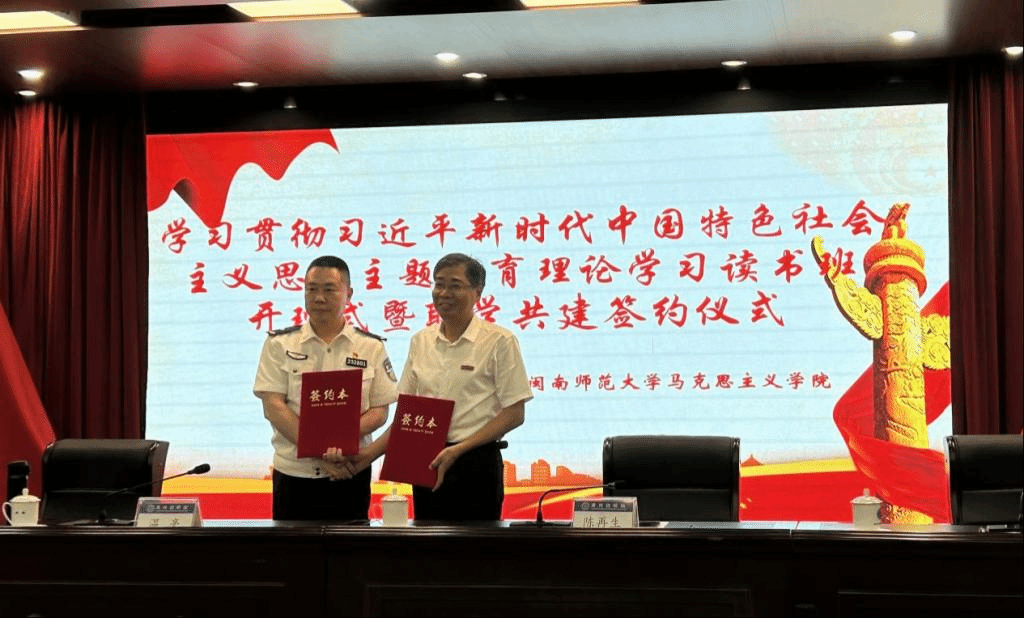 10月11日,我院与漳州出入境边防检查站签订警校共建协议,我院院长陈再生参加边检站学习贯彻习近平新时代中国特色社会主义思想主题教育理论学习读书班开班式暨联学共建签约仪式。