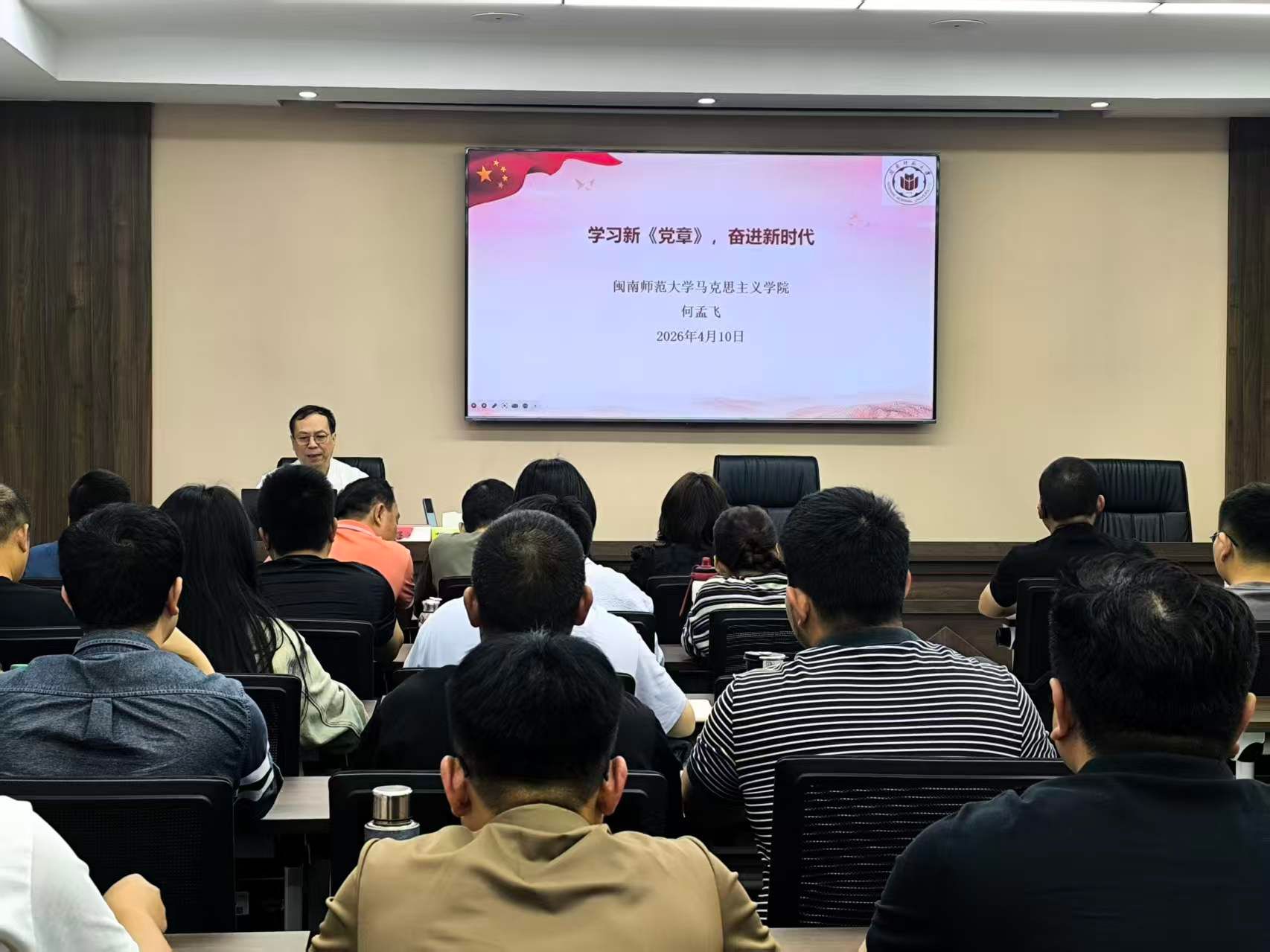 4月10日,我院何孟飞教授应邀为漳州台商投资区党校讲授“学习新《党章》,奋进新时代”党课。