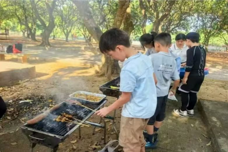 随后,大家沿着农场精心打造的果园小道漫步,开启亲近自然的田园之旅。小径蜿蜒,两旁果树错落有致,孩子们兴奋地穿梭在果树间,好奇地观察着果实的形状和颜色,不时向家长询问果树的品种和生长习性。大家放缓脚步,一边交流教学心得与生活趣闻,一边与孩子一起辨识各类果树,尽享田园间的盎然生机。现场气氛热烈而温馨