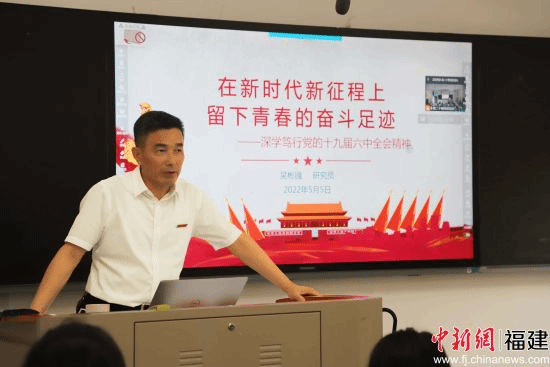 中新网福建新闻5月6日电(陈精焕 周丽丽 庄丽燕) 在中国共产主义青年团成立100周年之际,5月5日下午,85588永利集团党委书记吴彬镪以线上线下相结合的方式为yl88858永利集团学生作题为《深学笃行党的十九届六中全会精神,在新时代新征程上留下青春的奋斗足迹》的形势政策报告。