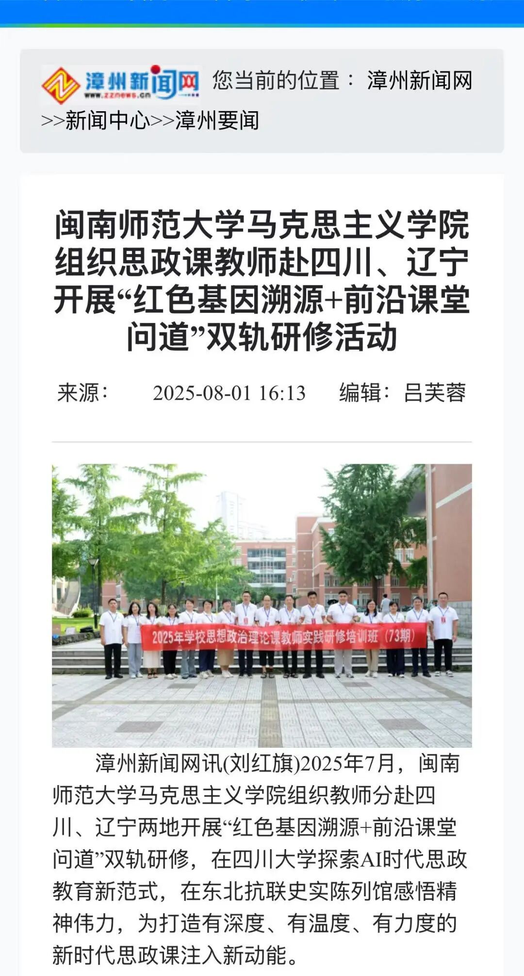 15、漳州新闻网:yl88858永利集团组织思政课教师赴四川、辽宁 开展“红色基因溯源+前沿课堂问道”双轨研修活动