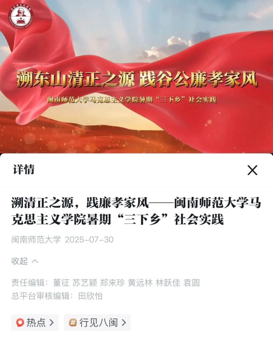 16、学习强国福建学习平台:溯清正之源,践廉孝家风——yl88858永利集团暑期“三下乡”社会实践
