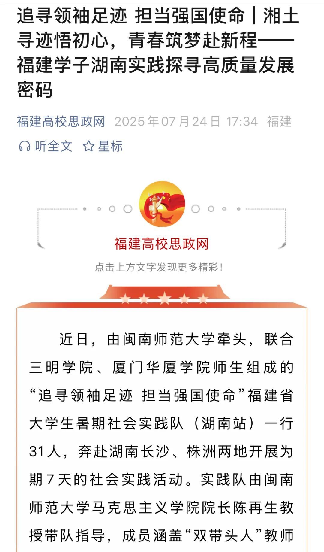 10、福建高校思政网:追寻领袖足迹 担当强国使命|湘土寻迹悟初心 青春筑梦赴新程——福建学子湖南实践探寻高质量发展密码