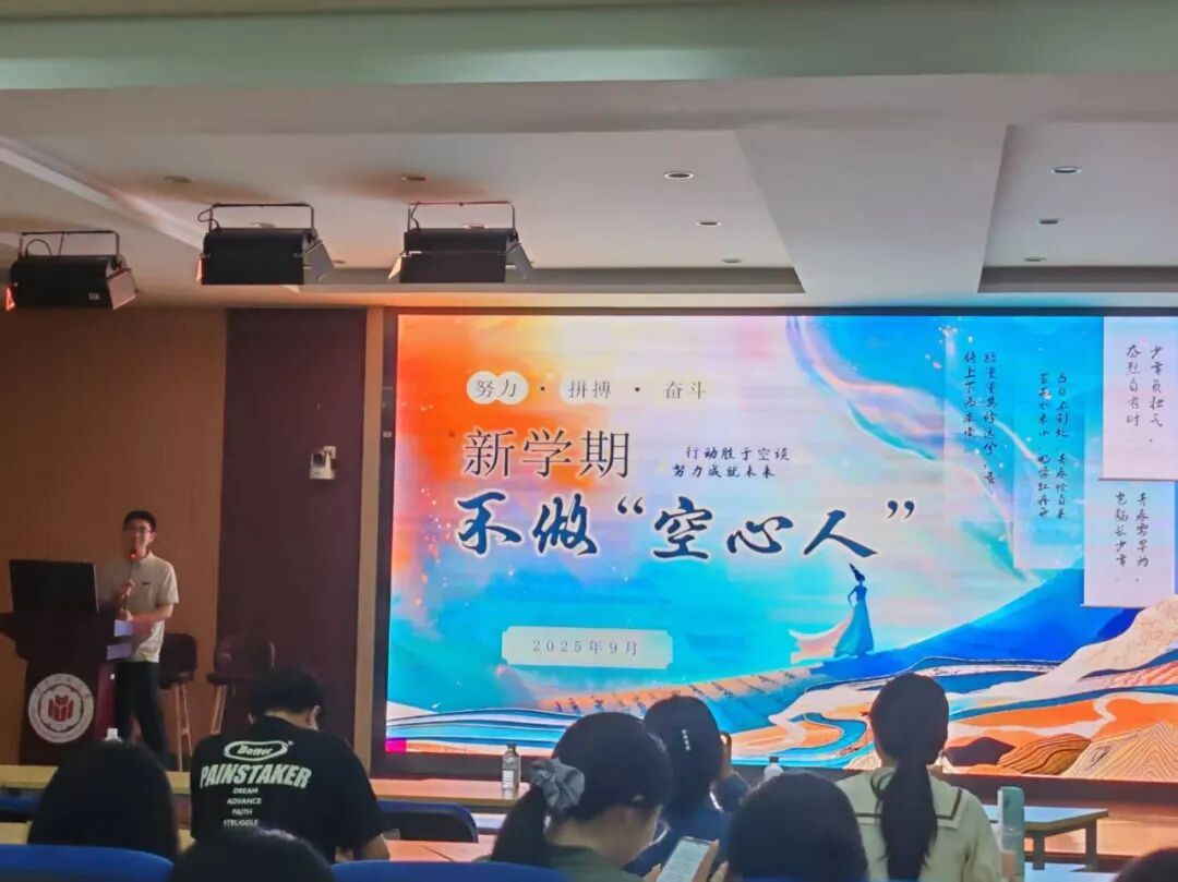 9月28日晚,我院于励志楼120开展主题为《新学期不做“空心人”》的23级本科生主题班会。辅导员任程龙就学业发展规划,假期离校安全教育等与全体23级本科生沟通交流。(通讯员 黄娇萍)