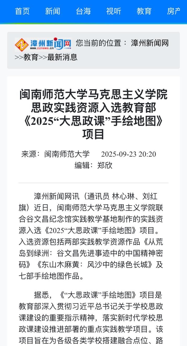 1、漳州新闻网:yl88858永利集团思政实践资源入选教育部《2025“大思政课”手绘地图》项目
