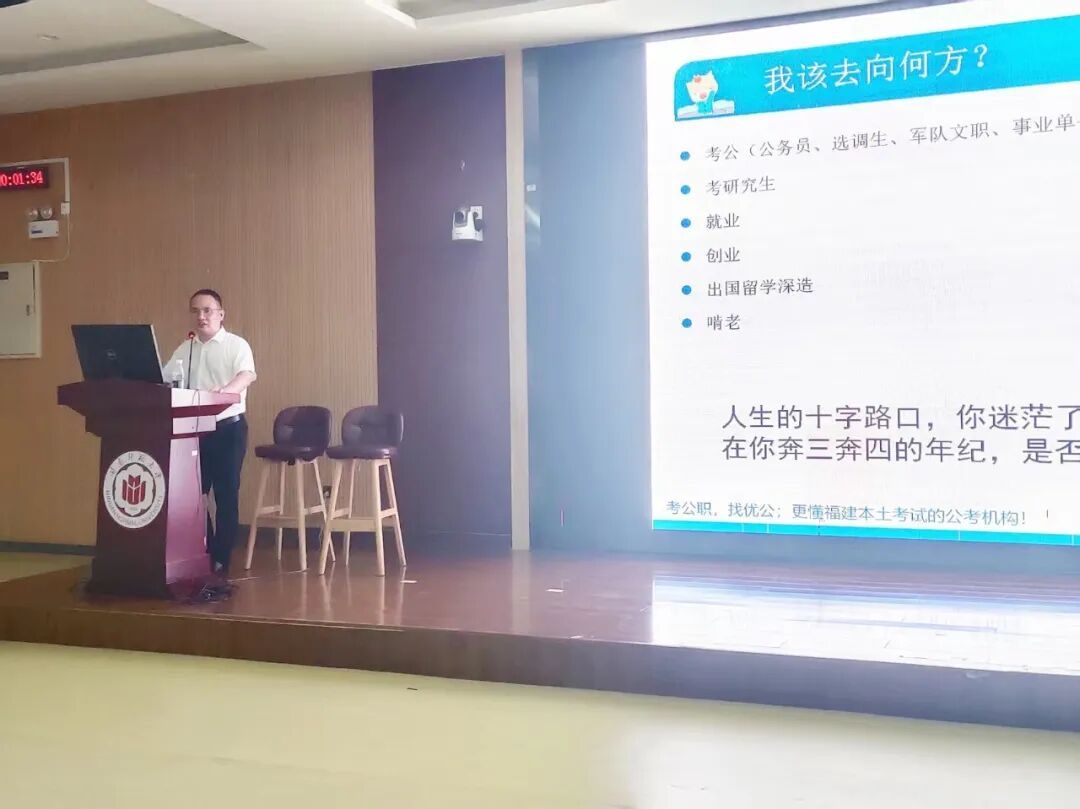 9月28日晚,我院于励志楼120开展“2026年公职类考试全程备考指导”专题讲座。本次讲座由优公教育校长林啸主讲,院党委副书记邓战军主持,23级全体学生参加。(通讯员 黄娇萍)