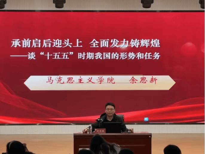 11月20日下午,我院在东门梯教二楼马院礼堂开展党的二十届四中全会精神专题辅导交流会。本次活动特邀余思新教授担任主讲嘉宾,为我院师生作题为“承前启后迎头上 全面发力铸辉煌——谈‘十五五’时期我国的形势和任务”的专题辅导报告,本次交流活动由硕士研究生黄锃瑜主持。(通讯员 王兵倩)