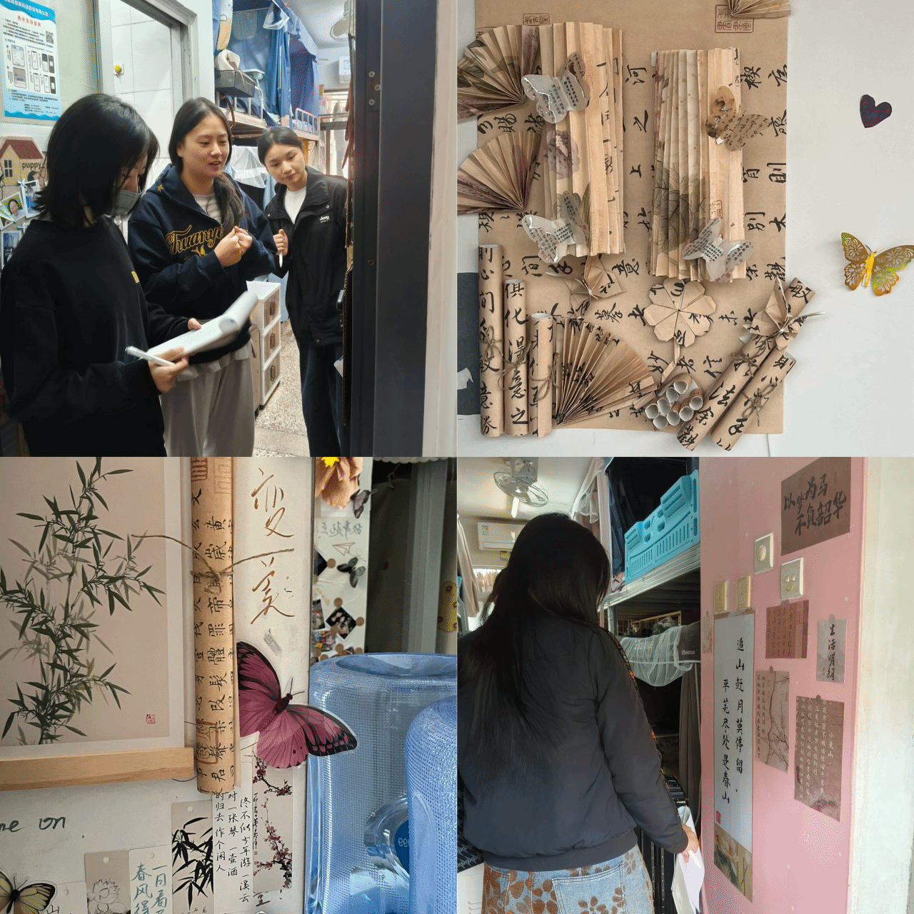 11月20日下午,我院自律委员会于达理、瑞京学生宿舍区开展以“方寸宿舍飘书香,薪火文脉共传承”为主题的宿舍美化大赛。本次比赛邀请学生处江秋婷、李洁老师,我院科研助理鞠静担任评委。(通讯员 程伊琳)