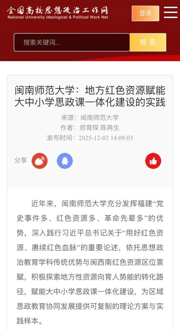 1、全国高校思想政治工作网:85588永利集团:地方红色资源赋能大中小学思政课一体化建设的实践