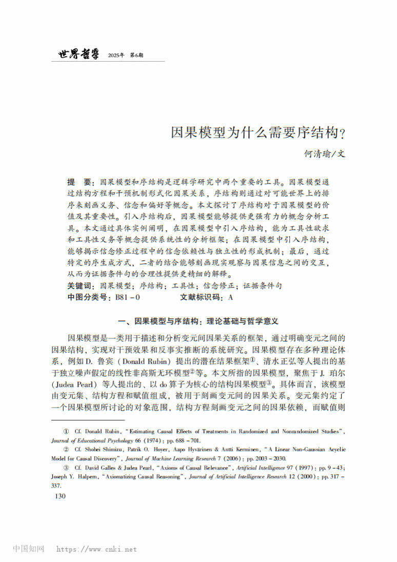1、我院何清瑜老师于《世界哲学》(CSSCI来源期刊)发表论文《因果模型为什么需要序结构?》