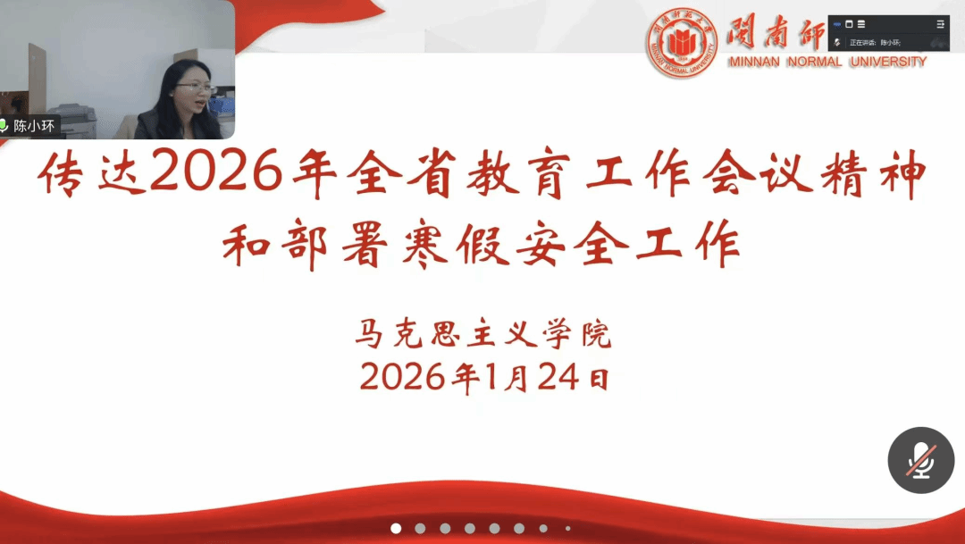 1月24日下午,我院在线上召开寒假前教职员工大会,会议由副院长(主持工作)黄耀明主持,我院党委副书记(主持党委工作)陈小环传达2026年全省教育工作会议精神,院党委副书记邓战军传达国家、省、校关于科研诚信文件精神,副院长林海燕对第六轮考核文件进行全面解读,黄耀明副院长(主持工作)作总结发言。(通讯员 许玮琳)