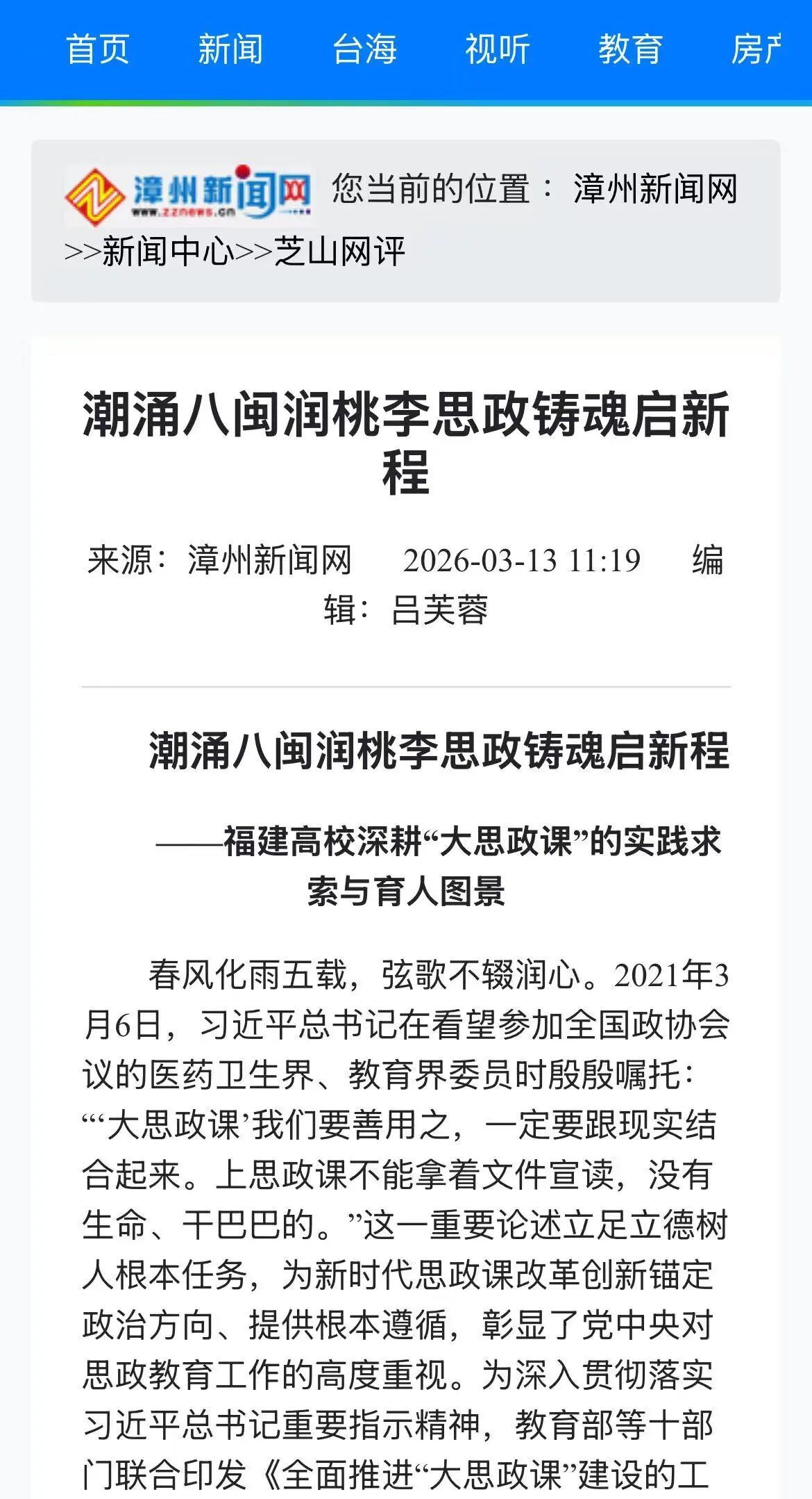 1、漳州新闻网:潮涌八闽润桃李思政铸魂启新程