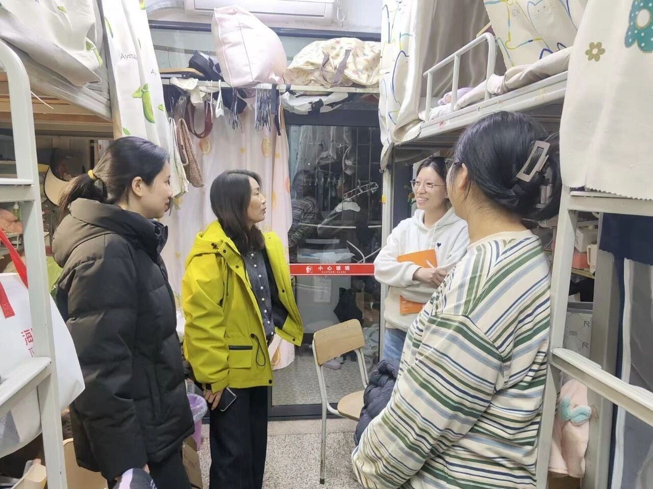 3月11日晚,为深入关心了解毕业班学生求职就业情况,我院2022级思政一班班主任刘玲元、辅导员团队走访瑞京学生公寓毕业班宿舍,并结合当前就业形势为大家提供贴心建议。(通讯员 吴柳茜)