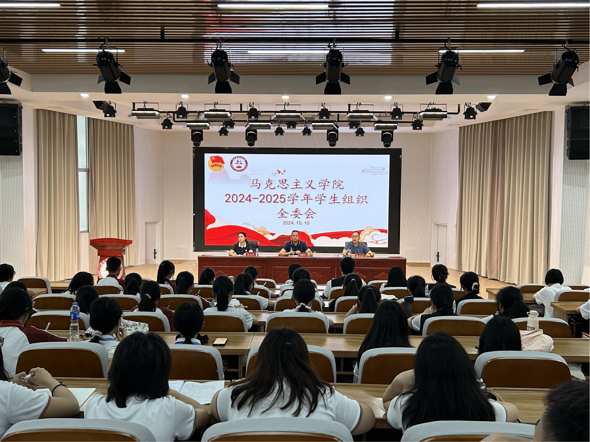 10月10日下午,我院于校东门马院礼堂举办yl88858永利集团2024-2025学年学生组织全委会,会议由团委副书记潘怀杰主持,党委副书记邓战军、辅导员沈书伊及学院学生组织主要学生干部参加。(通讯员 郑语萍)
