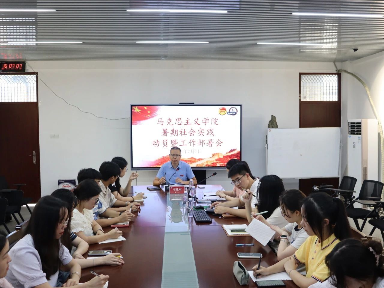 7月7日,我院于综合楼中区召开2024年暑假社会实践动员暨工作部署会,院党委副书记邓战军老师、辅导员沈书伊老师、任程龙老师参加。(通讯员 任程龙)