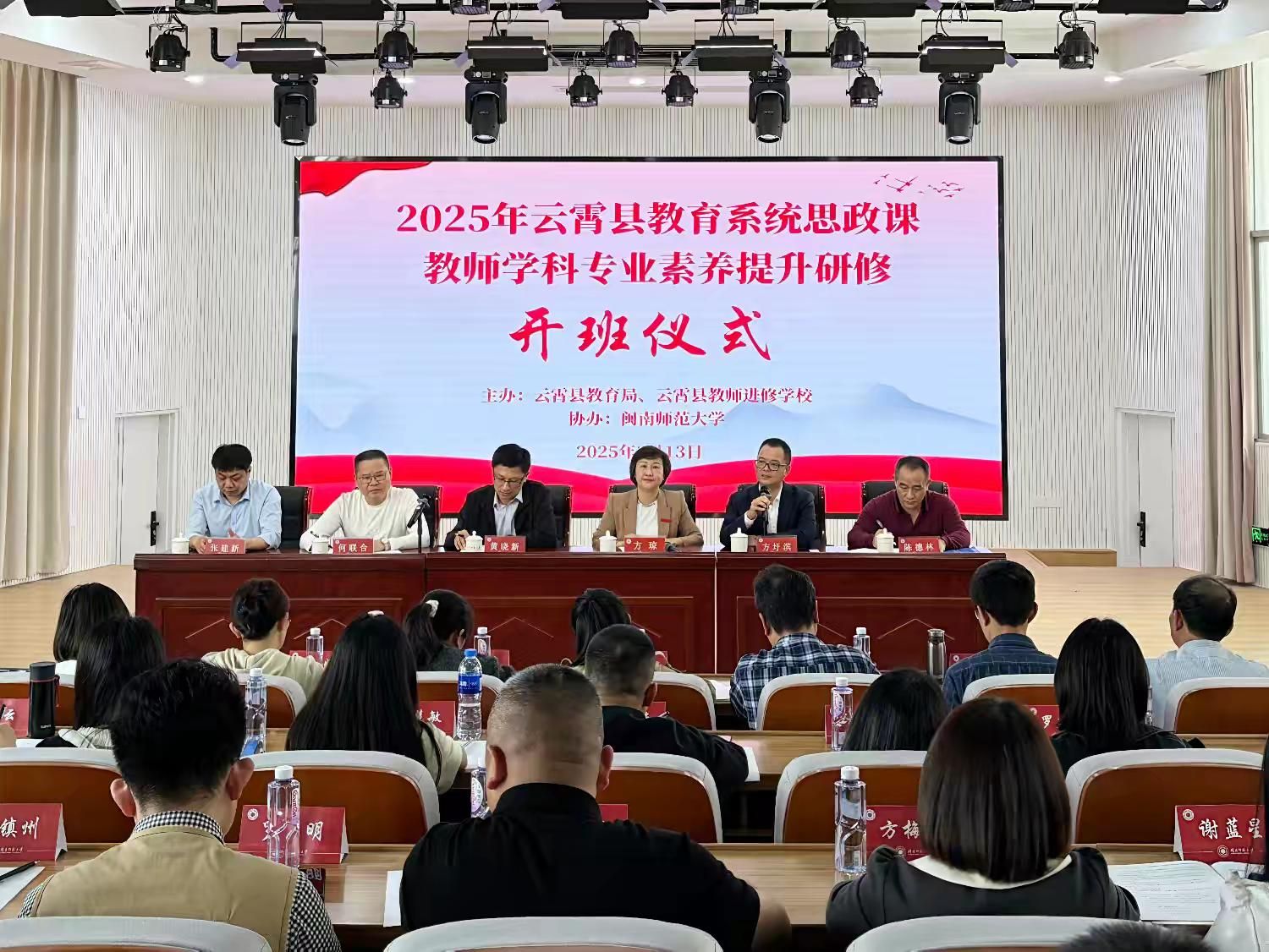 3月13日,2025年云霄县教育系统思政课教师学科专业素养提升研修开班仪式于yl88858永利集团东门礼堂召开,院党委书记方琼出席开班仪式。(通讯员 任程龙)