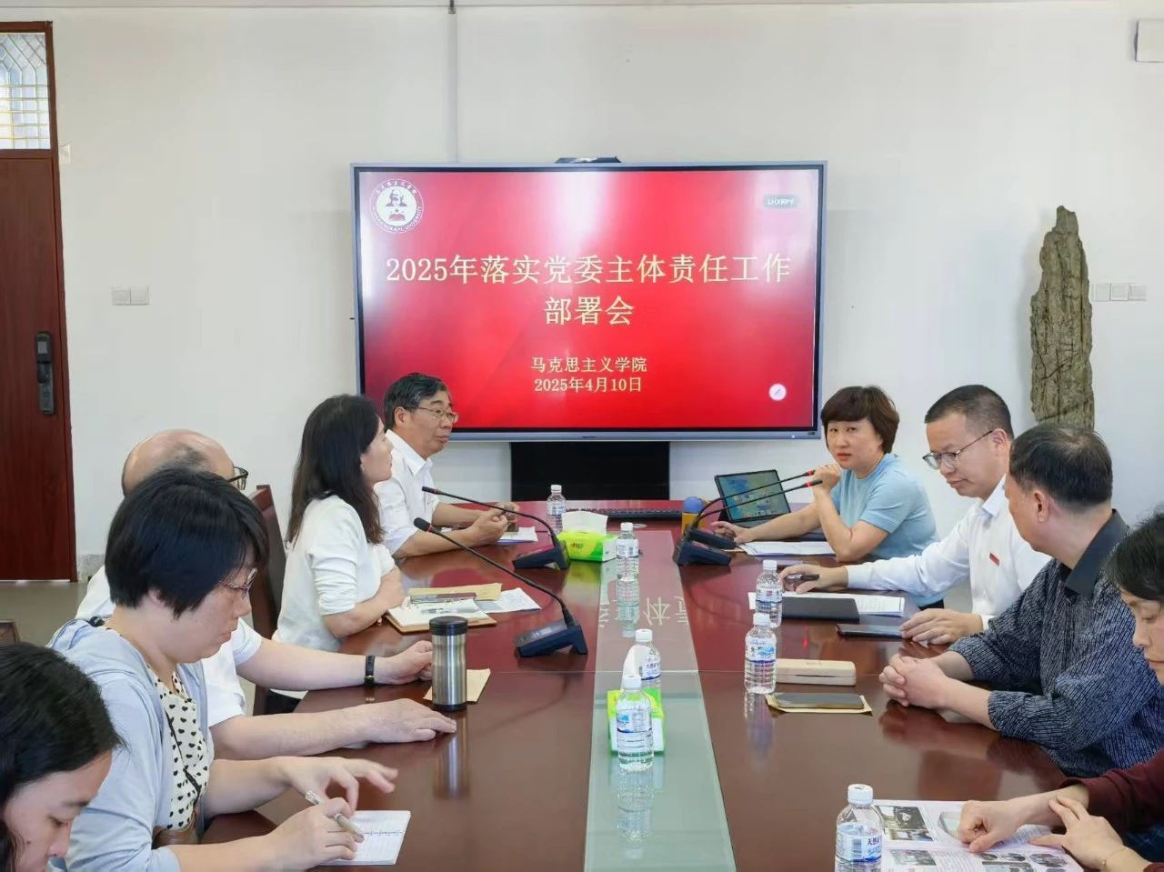4月10日,我院在综合楼中区404会议室召开2025年落实党委主体责任工作部署会,会议由我院党委书记方琼主持,全体党委委员参加。(通讯员 庄震浩)