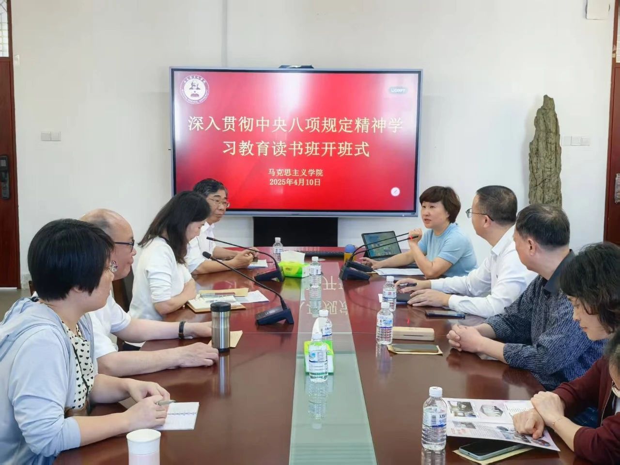 4月10日,我院召开深入贯彻中央八项规定精神学习教育读书班开班式,全体党委委员、党支部书记、支委参加。(通讯员 王烨)